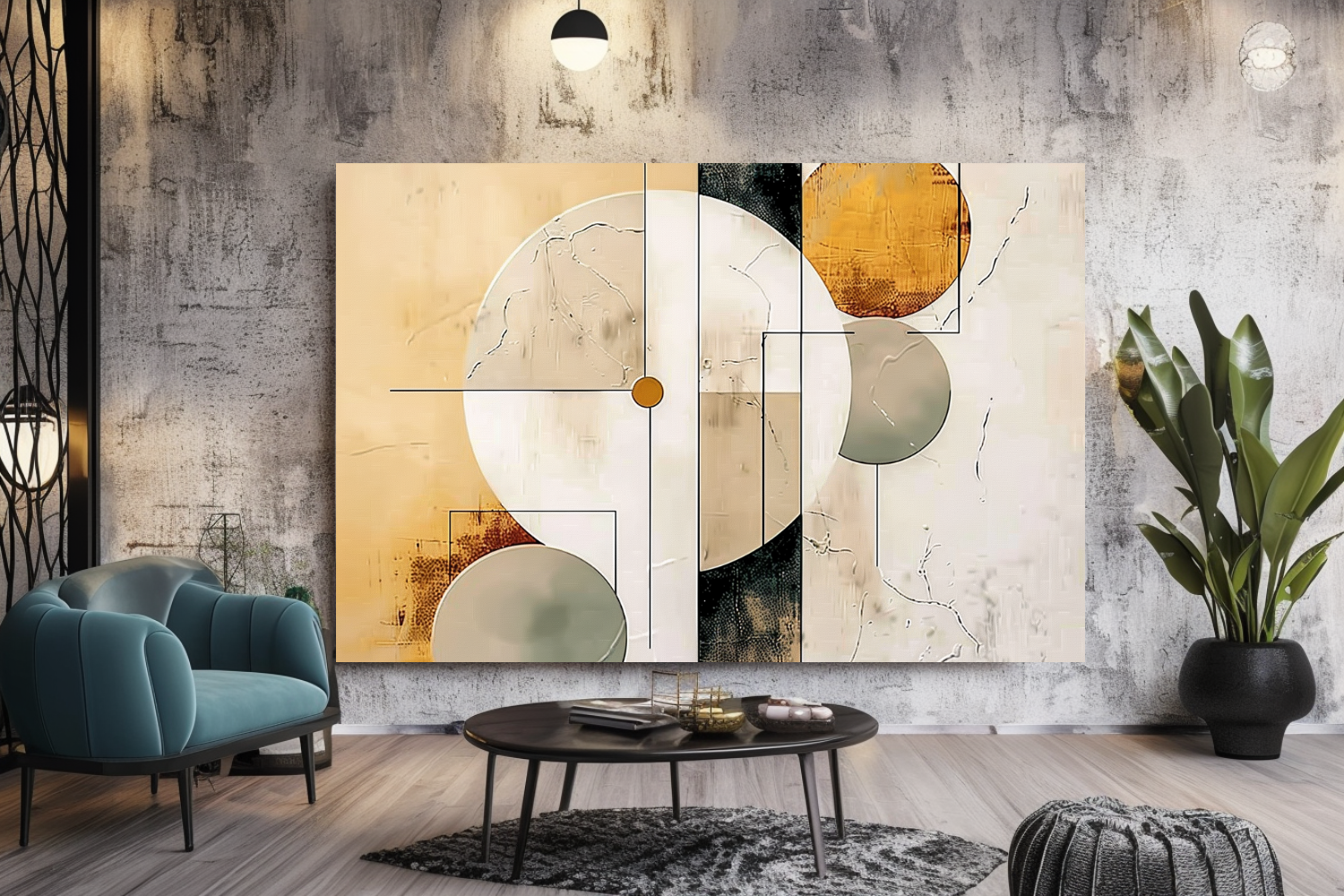 “Geometric Harmony” conveys tranquility, balance, and elegance. It invites the observer to embrace the beauty of simplicity and appreciate the synergy of shapes and colors. Perfect for any setting, this artwork adds refinement and artistic value to your space, fostering a sense of calm and inspiration. Observing this piece evokes feelings of peace and a deep appreciation for harmony in everyday life.